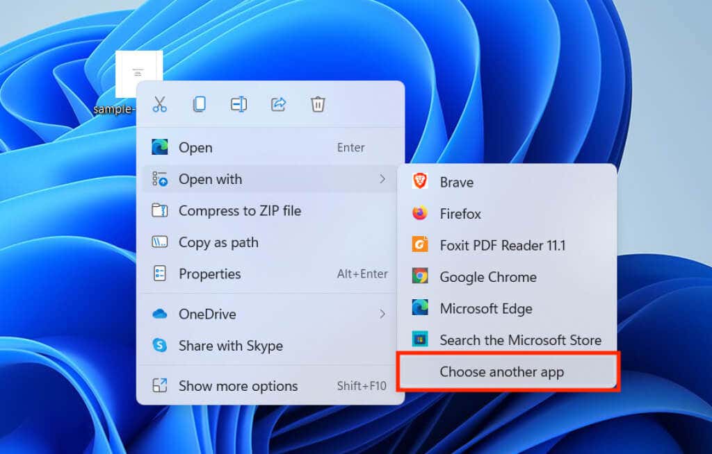1. Right-click any PDF file and select Open with > Choose another app.