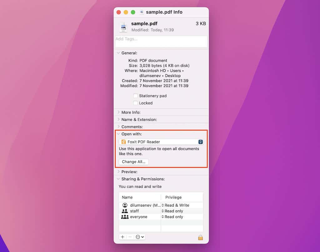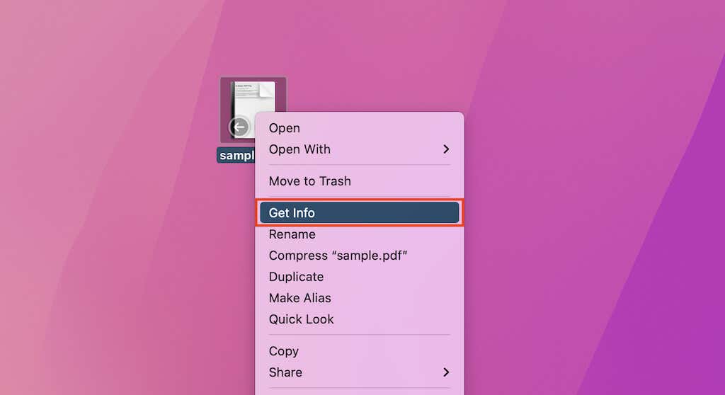 1. Control-click or right-click any PDF file and select Get Info.