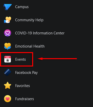 In the left-hand menu on your Facebook feed page, select the Events tab. You may have to select See More first.
