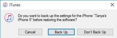 Restore iPhone is more interesting because it can work in two different ways depending on what you choose. Firstly, it’ll ask you if you want to create a backup or not. This is up to you, of course.