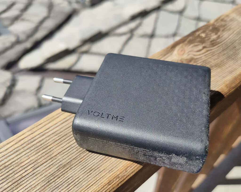 The charging block has a matte black finish with VOLTME branding on the side. On the front side of the device, you’ll find the three charging ports. On the back side, you’ll find the plug (non-interchangeable). The charger I received for testing has an EU plug, but the US version comes with foldable prongs that are convenient for transportation.