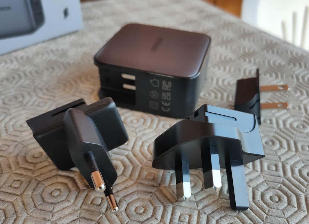 The charger’s body feels solid and is made of quality materials, so you don’t have to worry about tossing it around in your bag when traveling. Inside the box, you’ll find three interchangeable plus – for the US (with foldable prongs), EU, and UK sockets. Changing them is extremely easy – press the button on top of the charging block, and replace one plug with another.