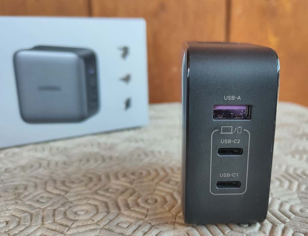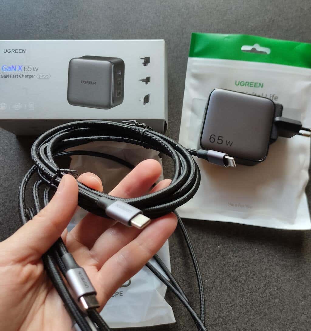 I found that when you want to use the Ugreen adapter as a laptop or desktop charger, the best way is to only use single-port charging. As soon as you start using two ports simultaneously, the max amount of power changes to 45W, and that might not be enough power to charge your laptop efficiently.