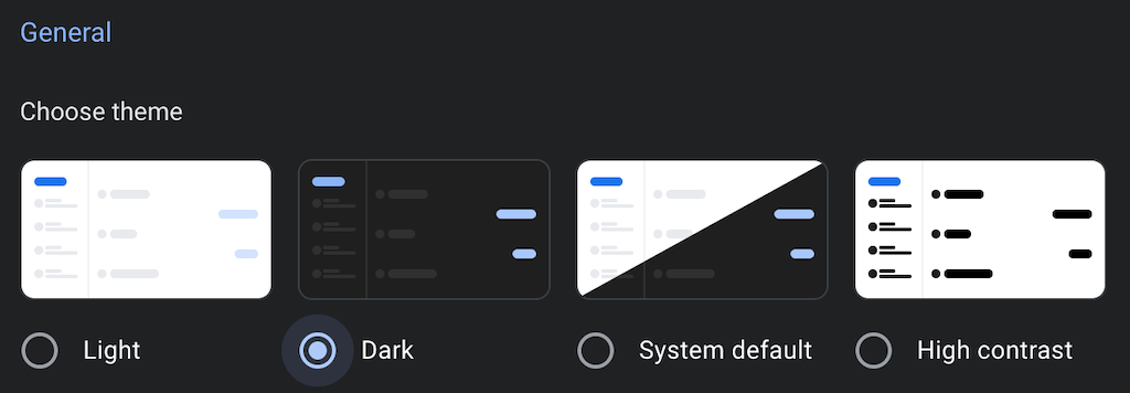 If you prefer using your apps in dark mode, you can make Google Messages for Web look darker and add contrast to it. Open the app in your browser, select the three vertical dots icon to open More options > Settings > Choose theme > Dark.