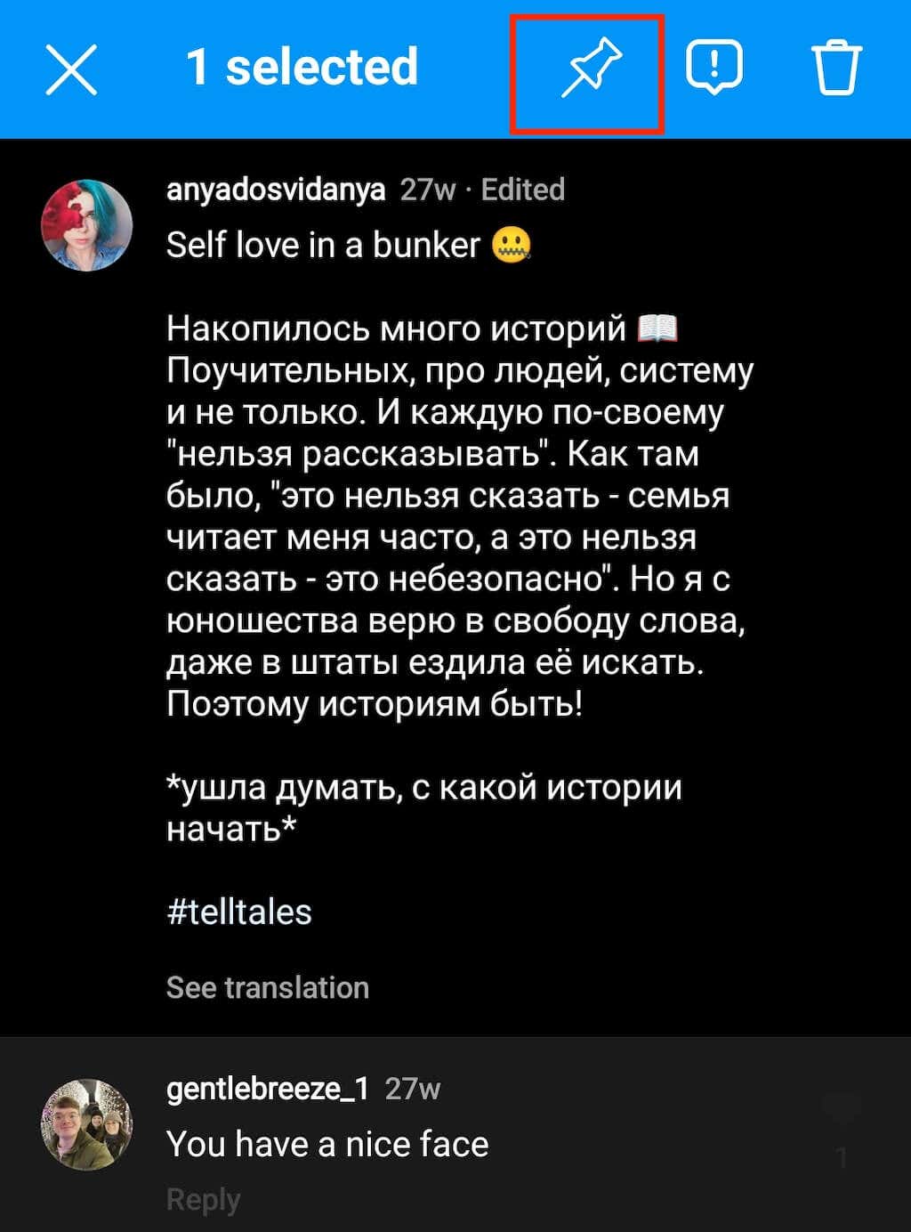 - You can’t pin your own comments, only those left by other users.
