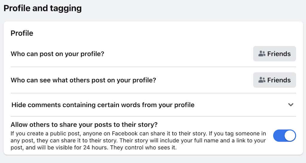 You can manually enable these features by following the path: Settings & privacy > Settings > Privacy > Profile and tagging. Go through all options displayed on the page and set them all to Friends, then switch the Reviewing sliders On.