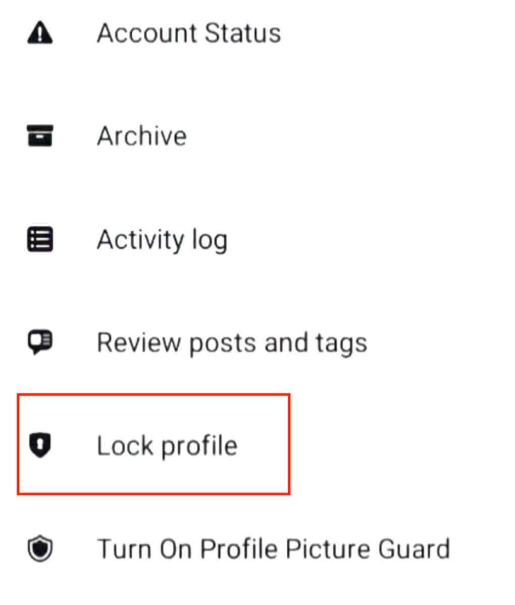 - If the feature is available in your country, you’ll see an option to Lock Profile towards the bottom of the three-dots menu.