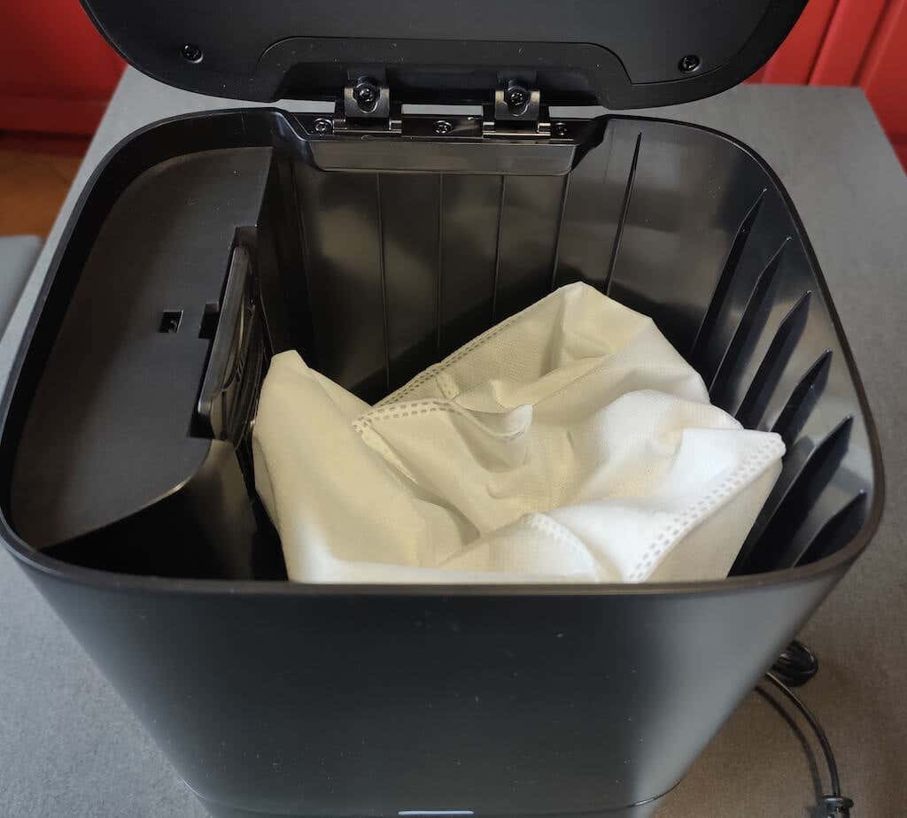 You’ll find a pre-installed dust bag inside the base that looks better than I expected. It has a plastic sealing instead of a cardboard one and looks very durable. You’ll find two extra dust collection bags included in the package, so you should be set for a good part of the year without having to buy extra dust bags.