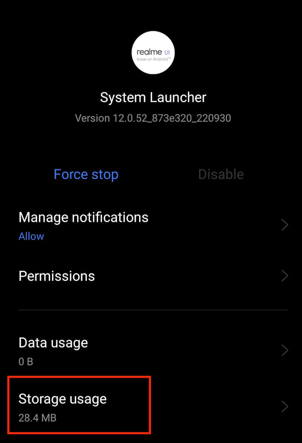 - Select Clear data (Clear storage) to reset the home screen layout.