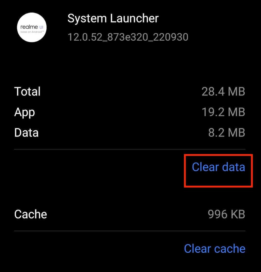 - Select the option to Clear launcher data.