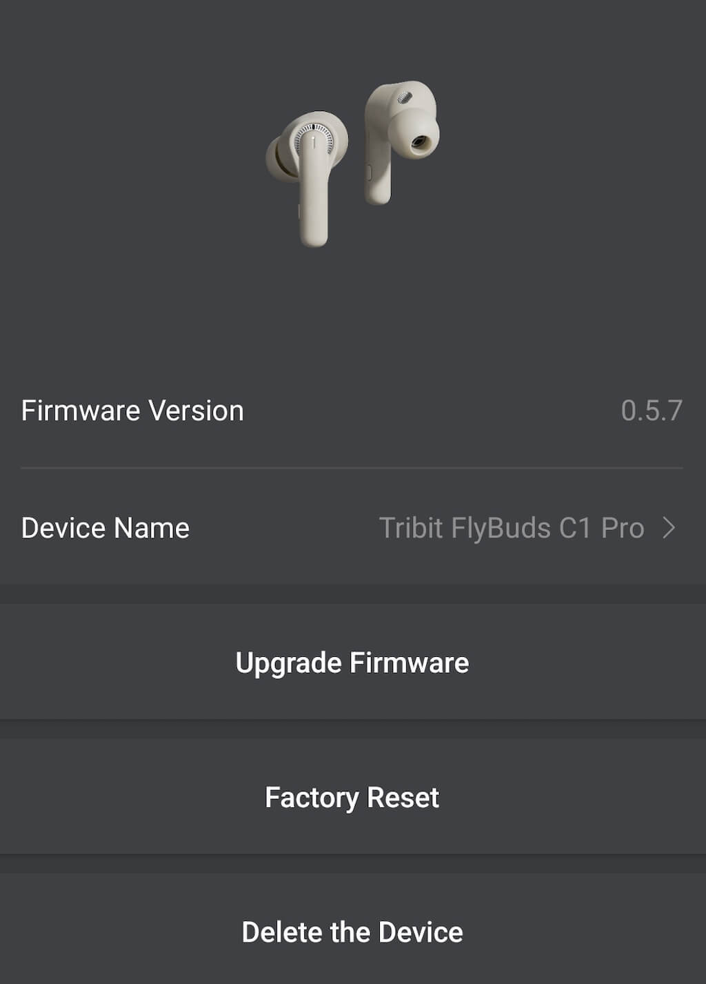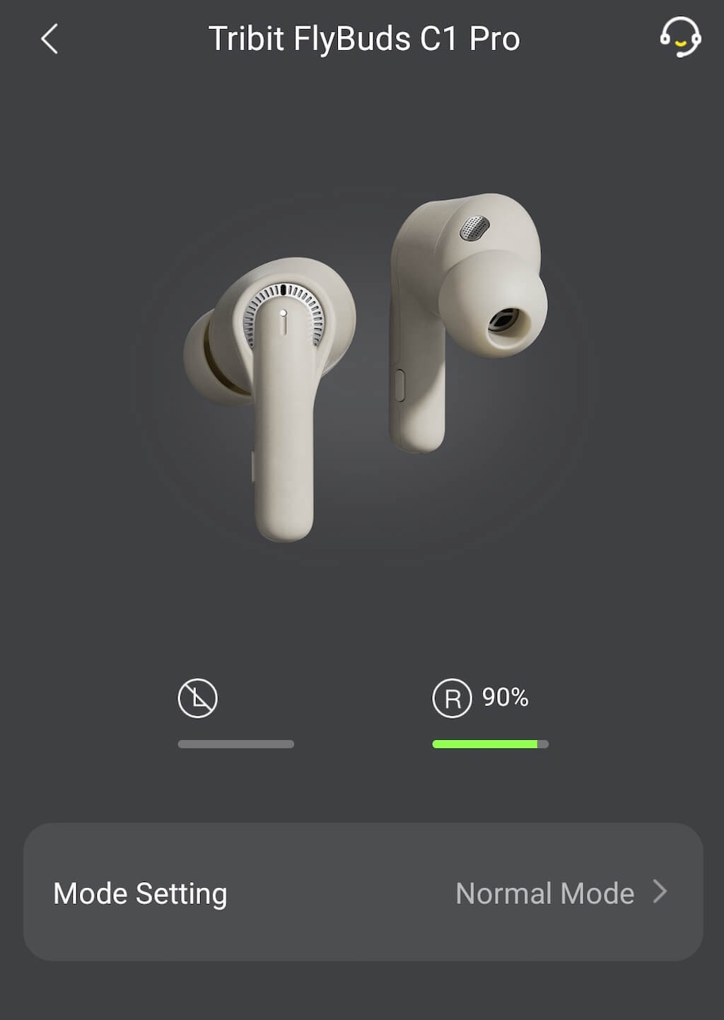 Under Earbuds, you’ll find some general information about your C1 Pro, like the battery levels in each earbud and the option to switch the listening mode from Normal to ANC.