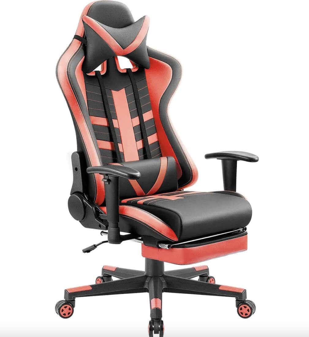 The Homall Gaming Chair with Footrest is the latest edition of their line of gaming chairs. For just over $200, you get a racing chair with a steel frame, a removable footrest, and a backrest that can recline up to 180 degrees. This chair can hold up to 330 lbs thanks to its sturdy build quality.