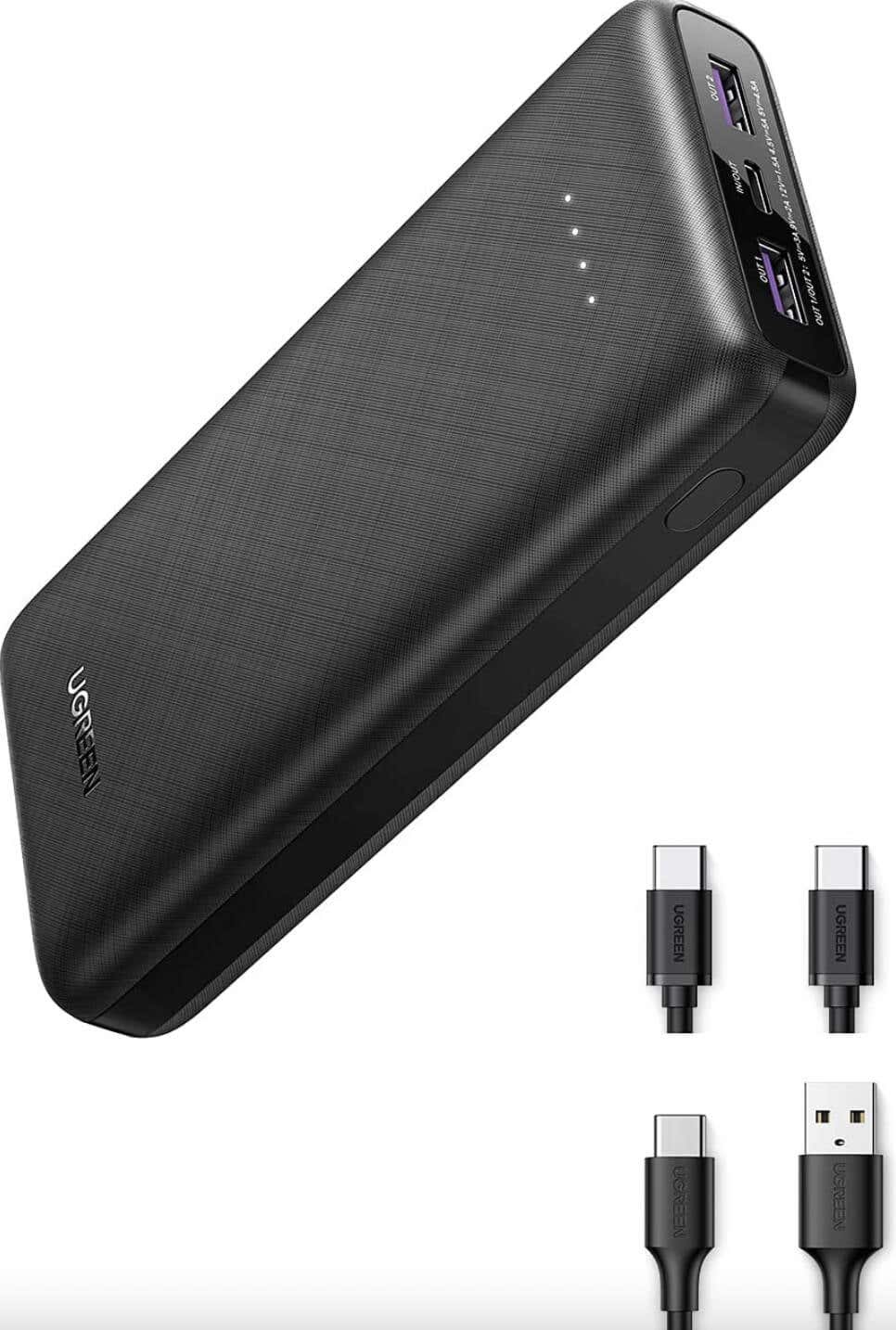 Ugreen Portable 20000mAh 20W power bank is one of the best mini power banks you can use to charge your phone on the go quickly. It’s a simple charger that can hold about two to three full charges for most phones. The Ugreen power bank will charge your phone from zero to 60% in about half an hour, which is impressive for its size and price of just $45. Included with the power bank, you’ll get a USB-C to USB-C cable and a USB-C to USB-A cable.