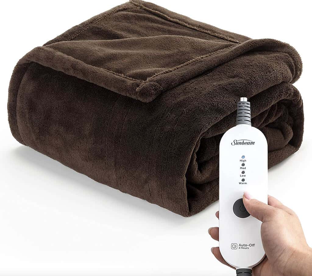 Sunbeam Royal Luxe heated blanket is one of the best electric blankets on Amazon. It has 12 heat settings and can automatically turn off the heating after 12 hours if you forget to unplug it. It’s made of 100% polyester, comes in different sizes and colors, and is machine-washable. A truly royal gift for just $39.