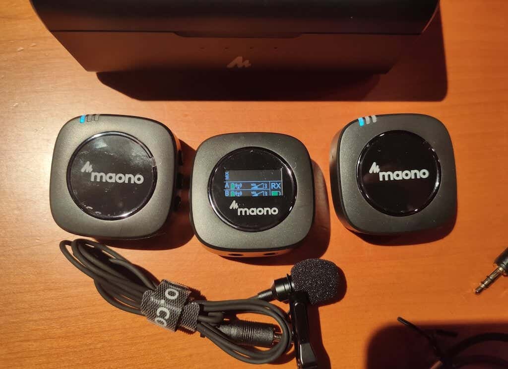 - Two Maono WM821 transmitters