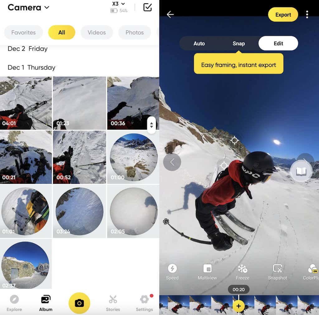 When it comes to the videos taken with the Insta360 X3, you can use a mobile app or a desktop app to view, edit, and download your videos. The primary purpose of the Insta360 X-series cameras isn’t about shooting 360-degree videos but rather about shooting your videos without worrying about your angles.