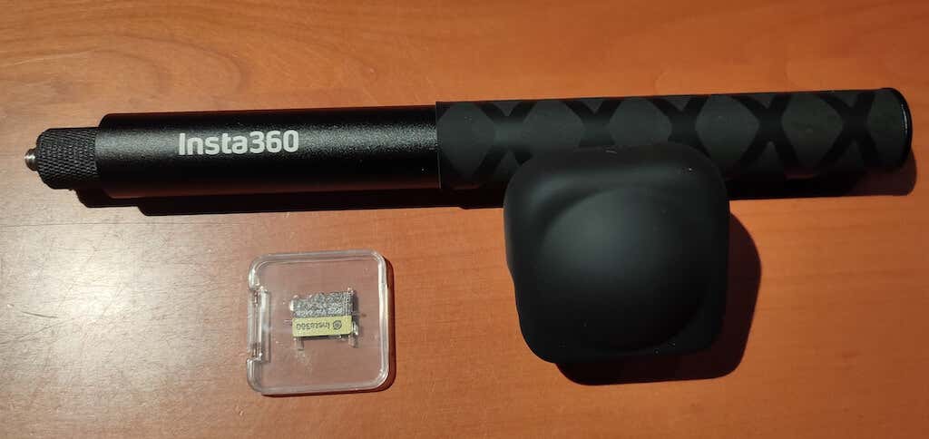 Aside from the camera, it contains a 120cm Invisible Selfie Stick (perfect for third-person view shooting), a Lens Cap to protect your lenses while carrying, and a 64GB microSD Card. With this kit, you can take your camera out of the box and start shooting right away.