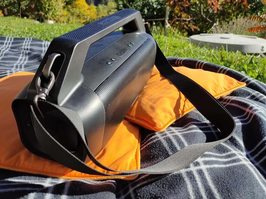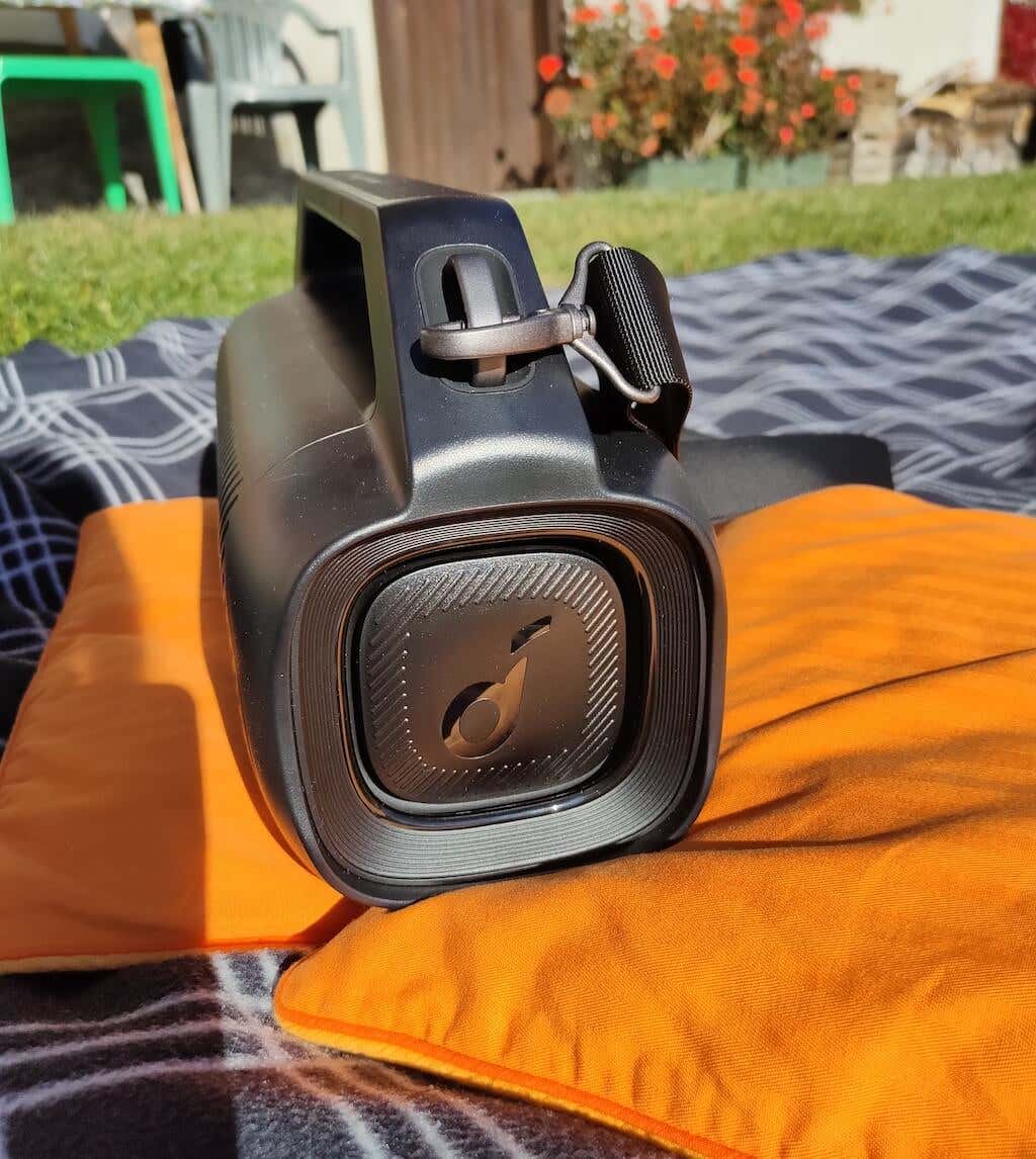 Motion Boom Plus floats in the water, so you don’t have to worry about dropping it into a pool during the party. According to Soundcore, the speaker can survive up to 30 minutes in water, so make sure you get it out in time. Even though the speaker weighs 5.29 lbs, it’s easy to carry thanks to the handle and the adjustable strap you can use to put it over your shoulder.