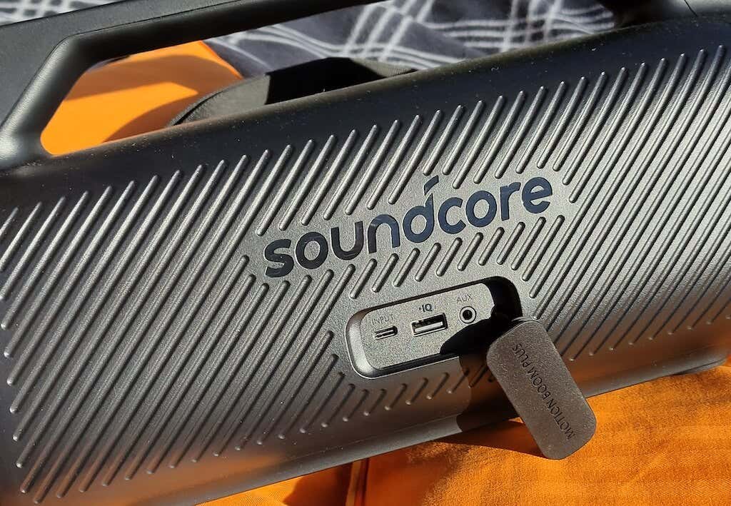 On the back of the speaker, you’ll find a USB-C charging port to charge the speaker, a USB-A port to turn your Motion Boom Plus into a power bank and charge other devices, and a 3.5mm headphone port for playback from devices that don’t support Bluetooth.