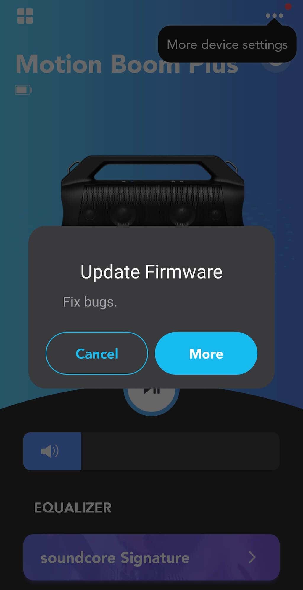 Soundcore has an app that supports their headphones and speakers. It’s available for Android and iOS, and we recommend downloading it first thing after unpacking your Motion Boom Plus.
