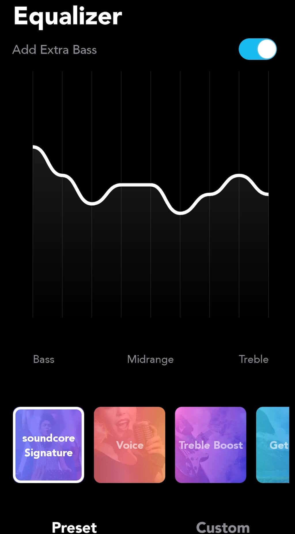 The most interesting part of the Soundcore app is the equalizer. If you want to tweak the sound of the speaker to fit exact specifications, you can create a Soundcore account and set custom EQ profiles for different occasions. If you don’t want to fiddle with the specs, you can use one of the presets available on the app – we recommend giving Soundcore Signature a try.