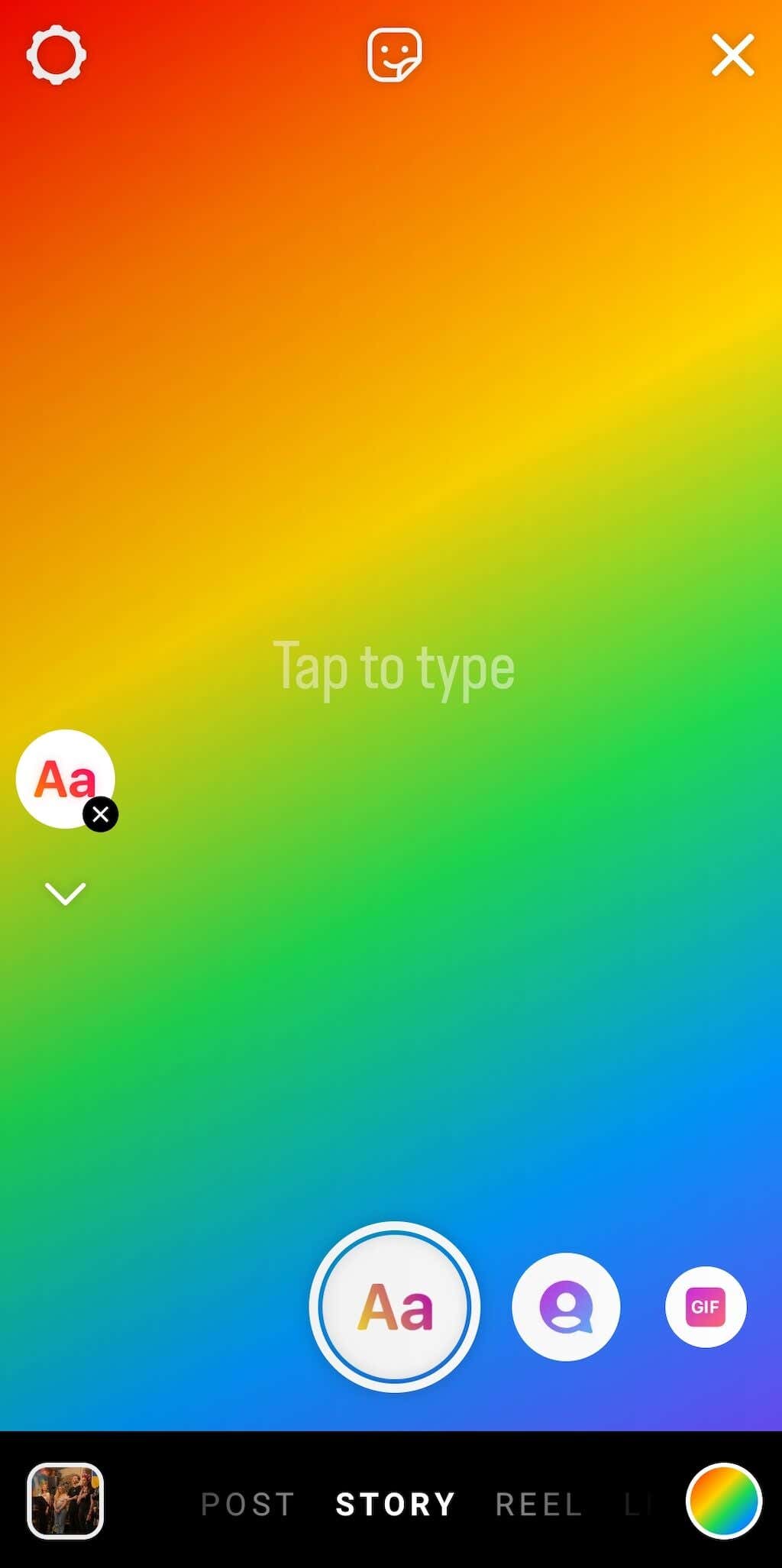 - For a simple text notification, select Create on the left side of the screen and choose the background color for your story.