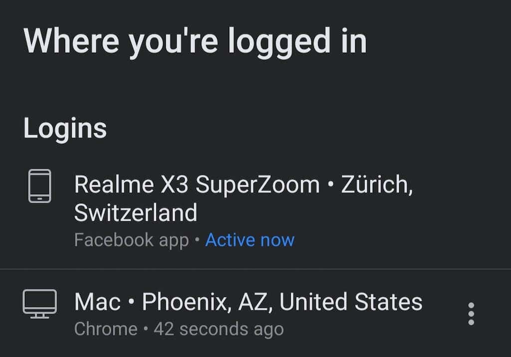 - On mobile, follow the path Settings & privacy > Settings > Password and security > Where you’re logged in.