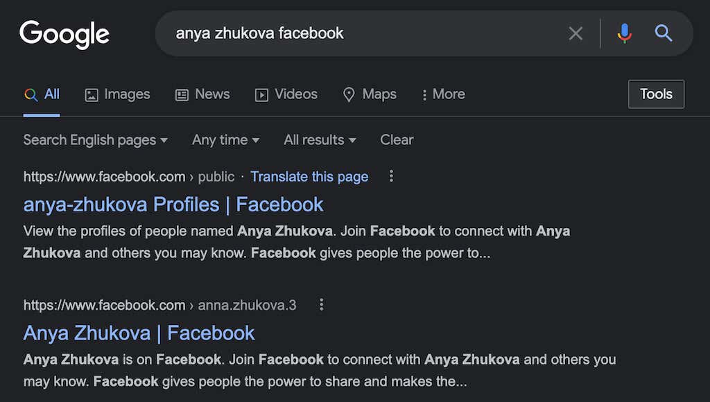 All you have to do to find information about a Facebook user using Google is to put their name in Google search and include Facebook in your inquiry to narrow down the search. Google will then give you all the information it finds about the person on Facebook that’s been set to public.
