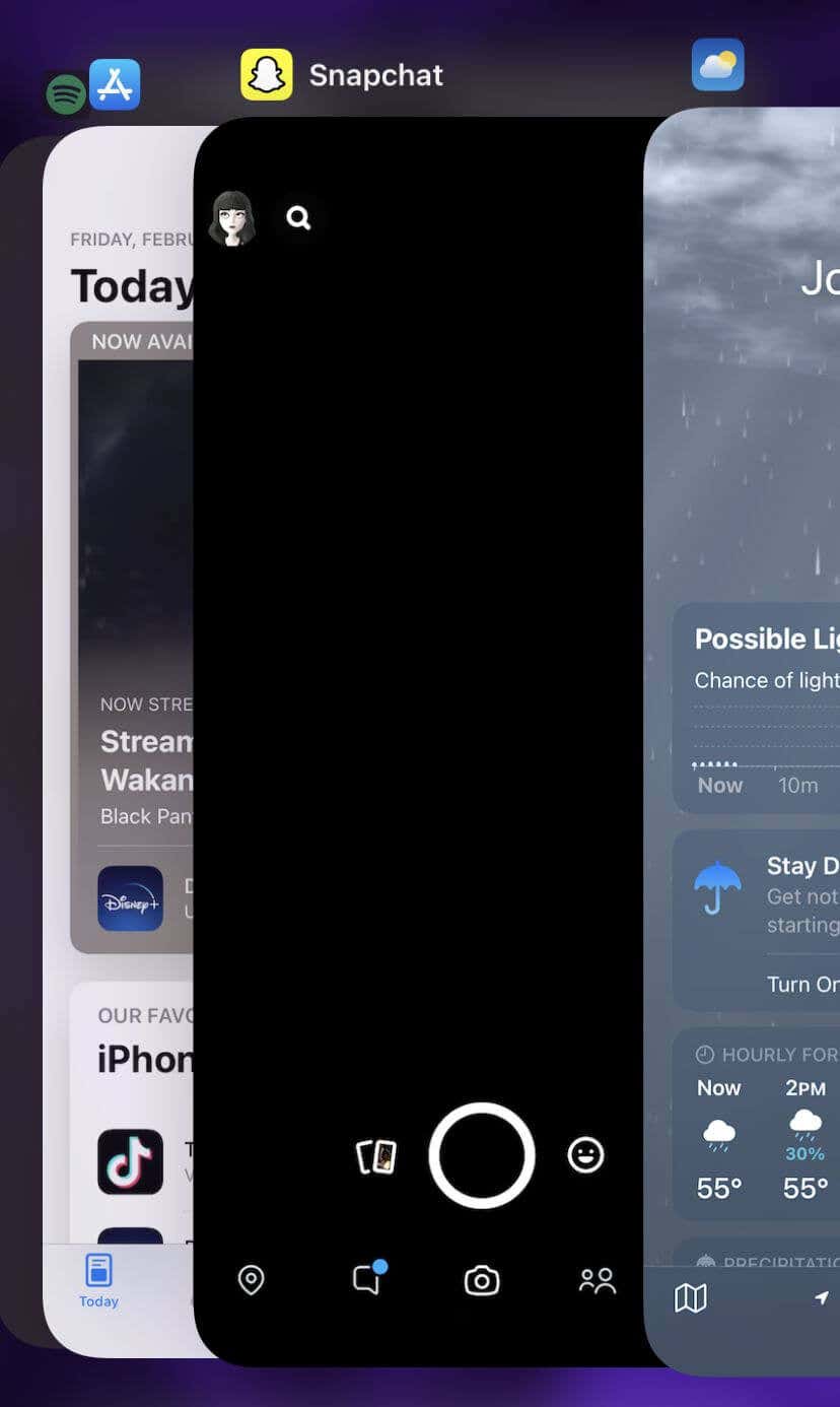 When freezing occurs, try restarting the app. This is different from exiting your homescreen and tapping the app again. Follow these instructions to restart Snapchat.