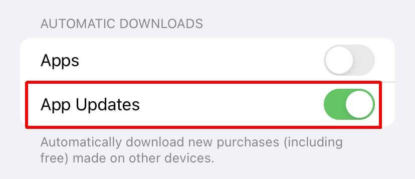 - Tap on the slider next to App Updates to have apps update automatically when one is available.