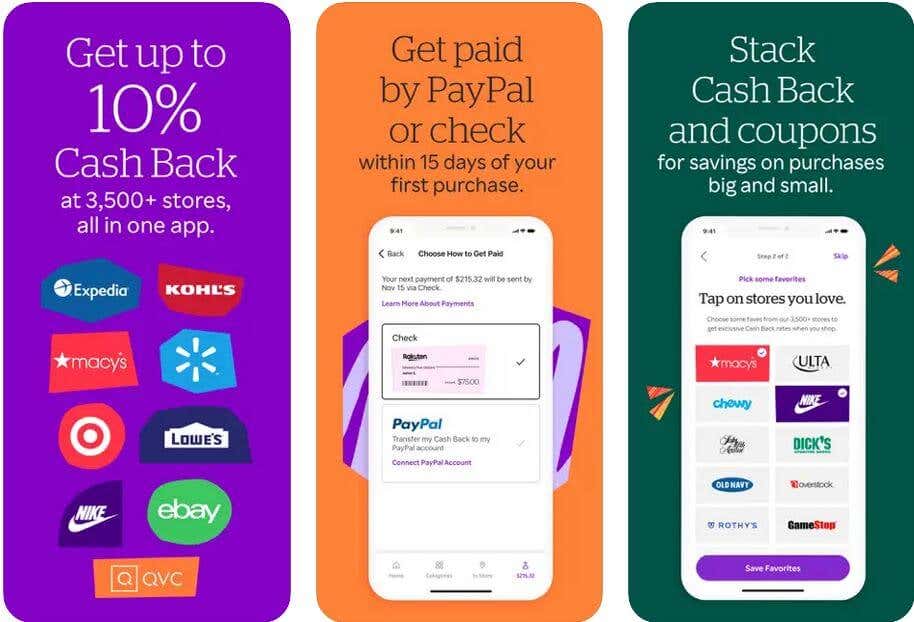 Rakuten is another excellent cashback app, offering cashback on hundreds of brands like Target, Walmart, Macy’s, and more. So, just by shopping, you can earn what you spend, making for a simple way to get paid for your purchases.