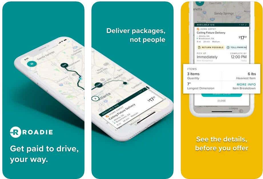 Roadie Driver is an app that allows you to deliver goods from stores by picking them up from the store and dropping the packages off at the designated locations. You get paid per delivery, so the amount you earn depends on how quickly you can finish deliveries.