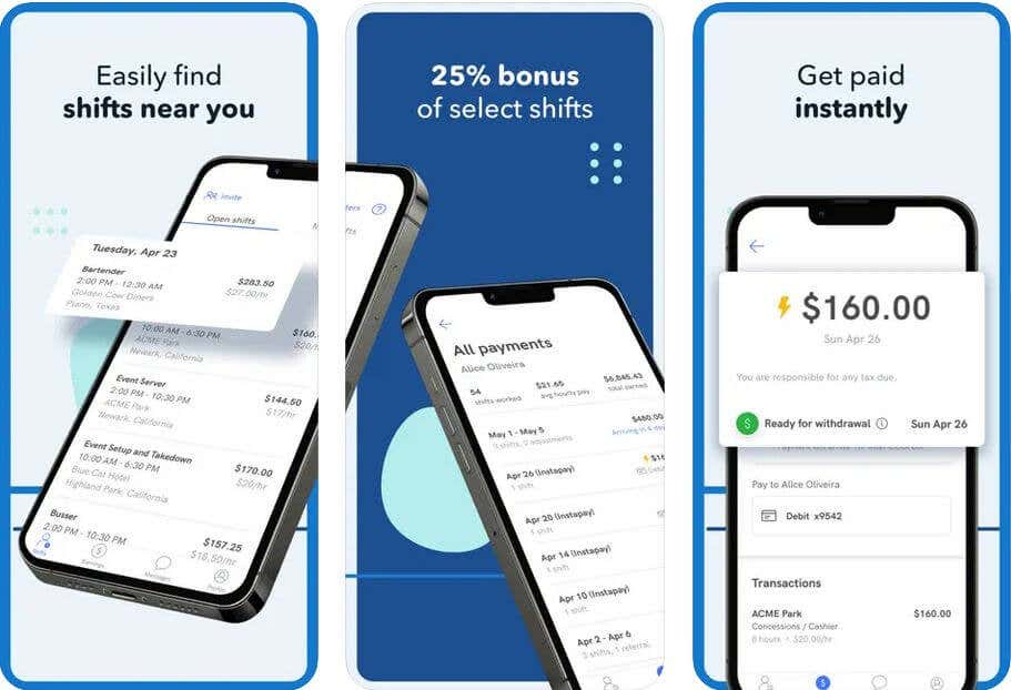 The jobs available are typically hourly service or retail shifts within your area. This app is great if you’re looking for work that is entirely flexible around your schedule.