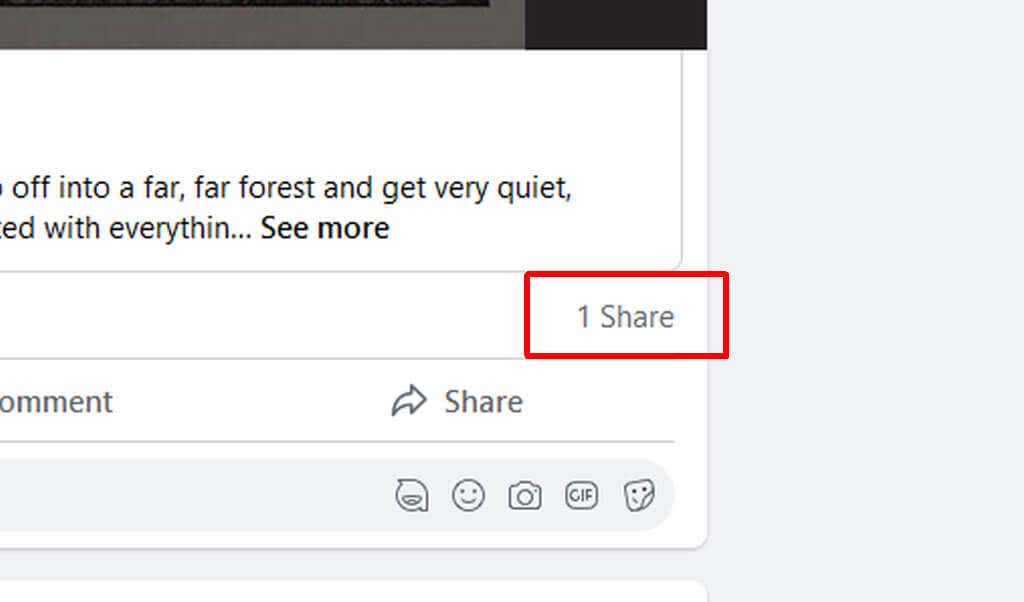 - Look at the bottom of the post, where you see the likes and reactions, and in the right-hand corner you can see the number of shares above the share button.