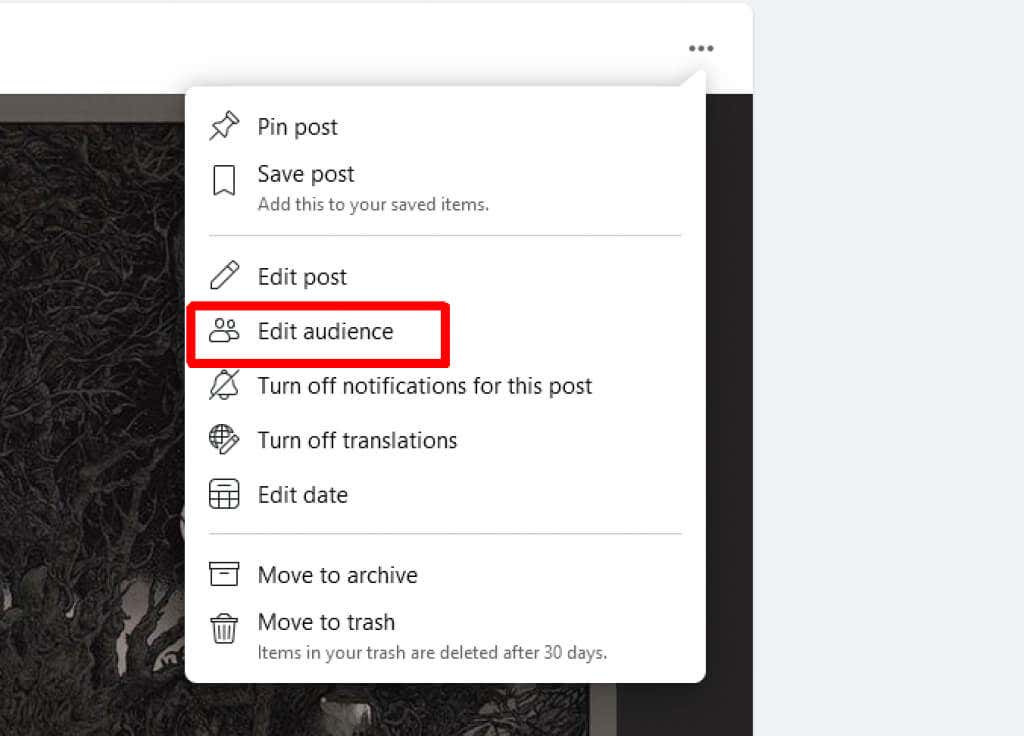 - Find the post on Facebook you want to limit sharing for.