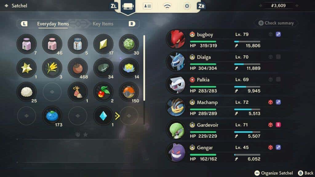 Thankfully, there is a way you can increase inventory space. In the Galaxy Team HQ in Jubilife village, besides the entrance door near the stairs, there’s a man you can talk to who will teach you how to conserve more inventory space in exchange for 100 Poke dollars. This will grant you one extra inventory slot. You can keep paying for more slots, but the price increases by 100 each time. In the long run, though, it’s worth it.