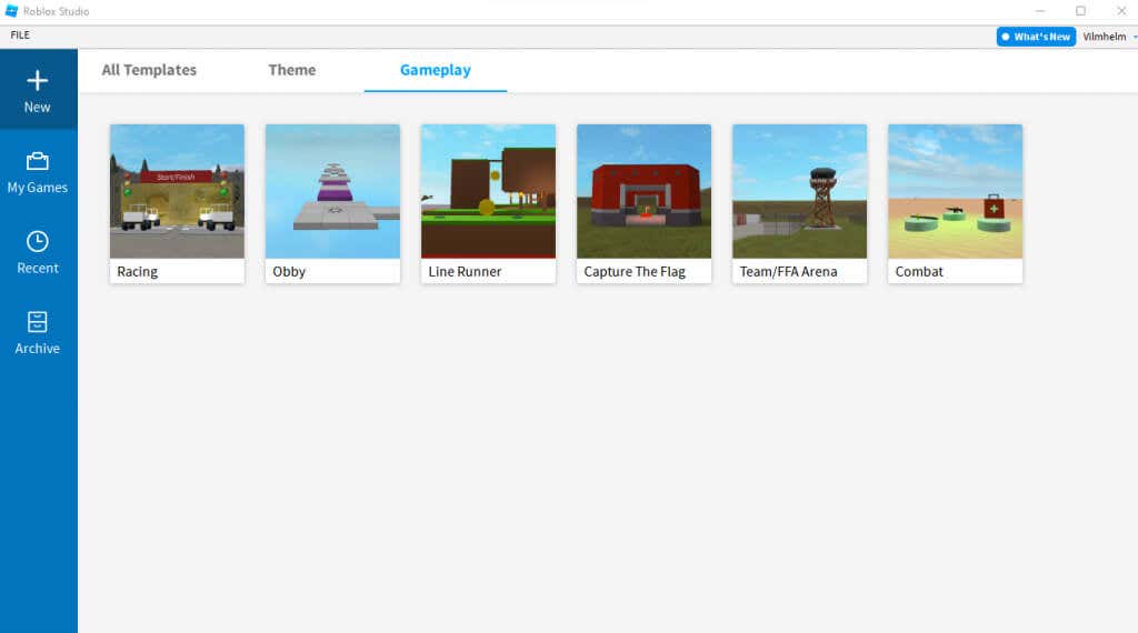 - After logging in you will finally be able to the main screen of Roblox Studio, displaying all the templates to help you get started.