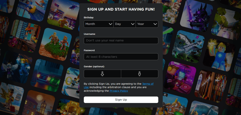 - If this is your first time doing this, use the Signup option to create an account first. All you need to make a Roblox account is a username and password, though it might take a few tries to find a username that’s not taken yet.