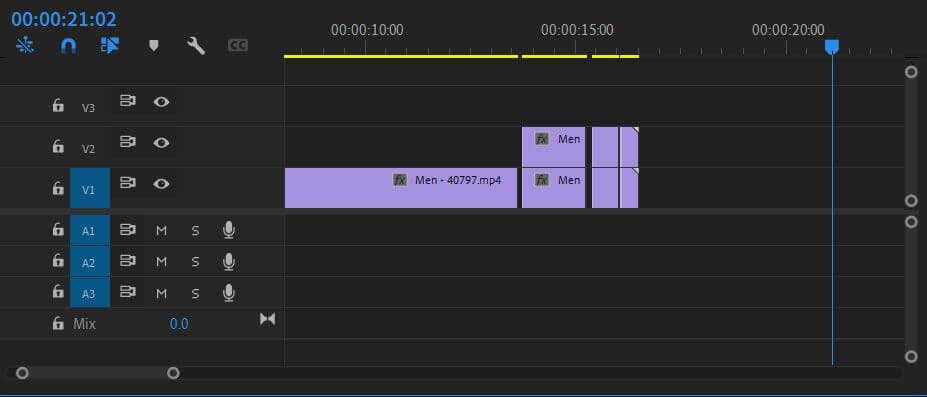 - To make the footage cut in and out, split the clip at the point you want the glitch out to start, and then spread them out a bit, as in the screenshot below.