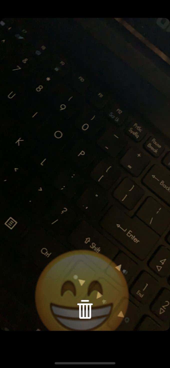 - If you want to delete the sticker, once you tap and hold on it you should see a trash can icon at the bottom center of the screen. Drag the sticker you want removed on top of it and it will be deleted.
