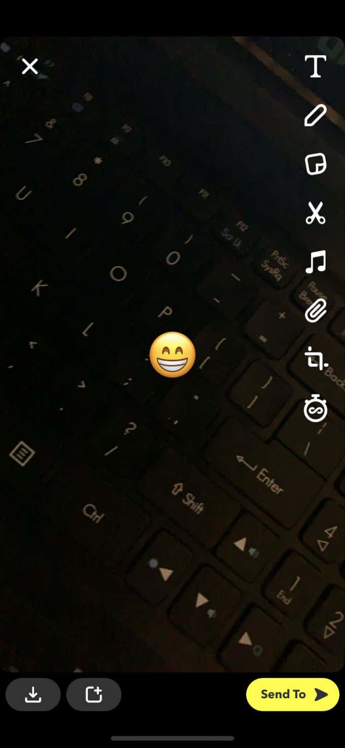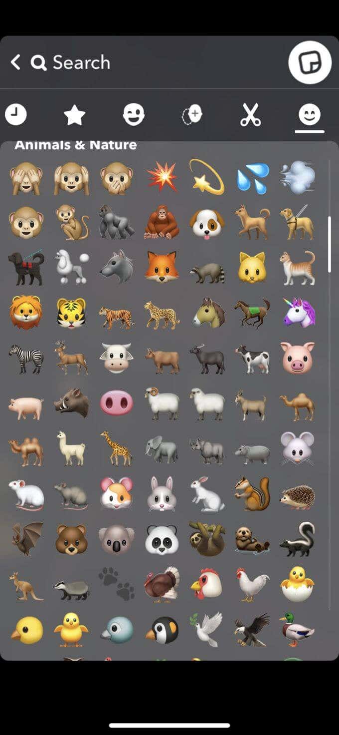 The final icon of a smiley face will take you to the Emoji stickers. You can add stickers of any Emoji available onto your snaps here.