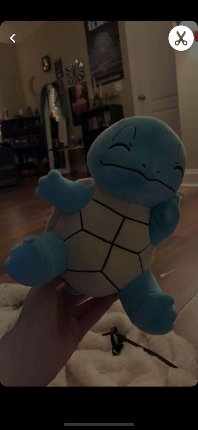 - Either take a photo on Snapchat, or access your camera roll from Snapchat and tap the three dots in the top-right corner, then tap Edit. When you’re in editing mode for a snap, tap on the scissor icon on the right side of the screen.