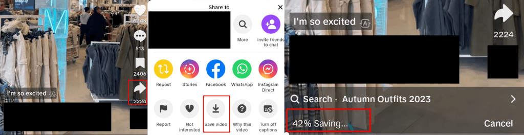 If you don’t mind downloading the TikTok video you want to share to your device, then you can share it from there to Facebook Stories. Here’s how to do that: