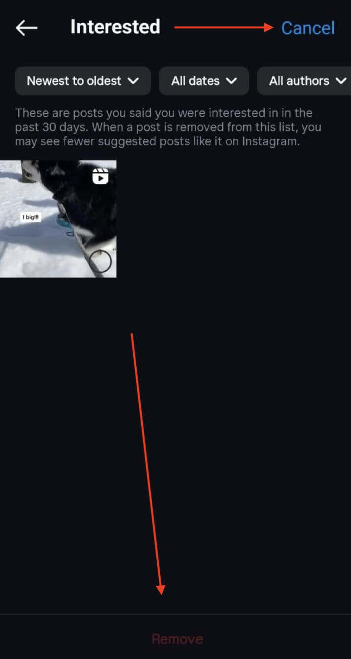 This section has all the posts you’ve marked as Interested in the past 30 days. If you remove a certain post from this list, Instagram will take a note and show you less of similar content.