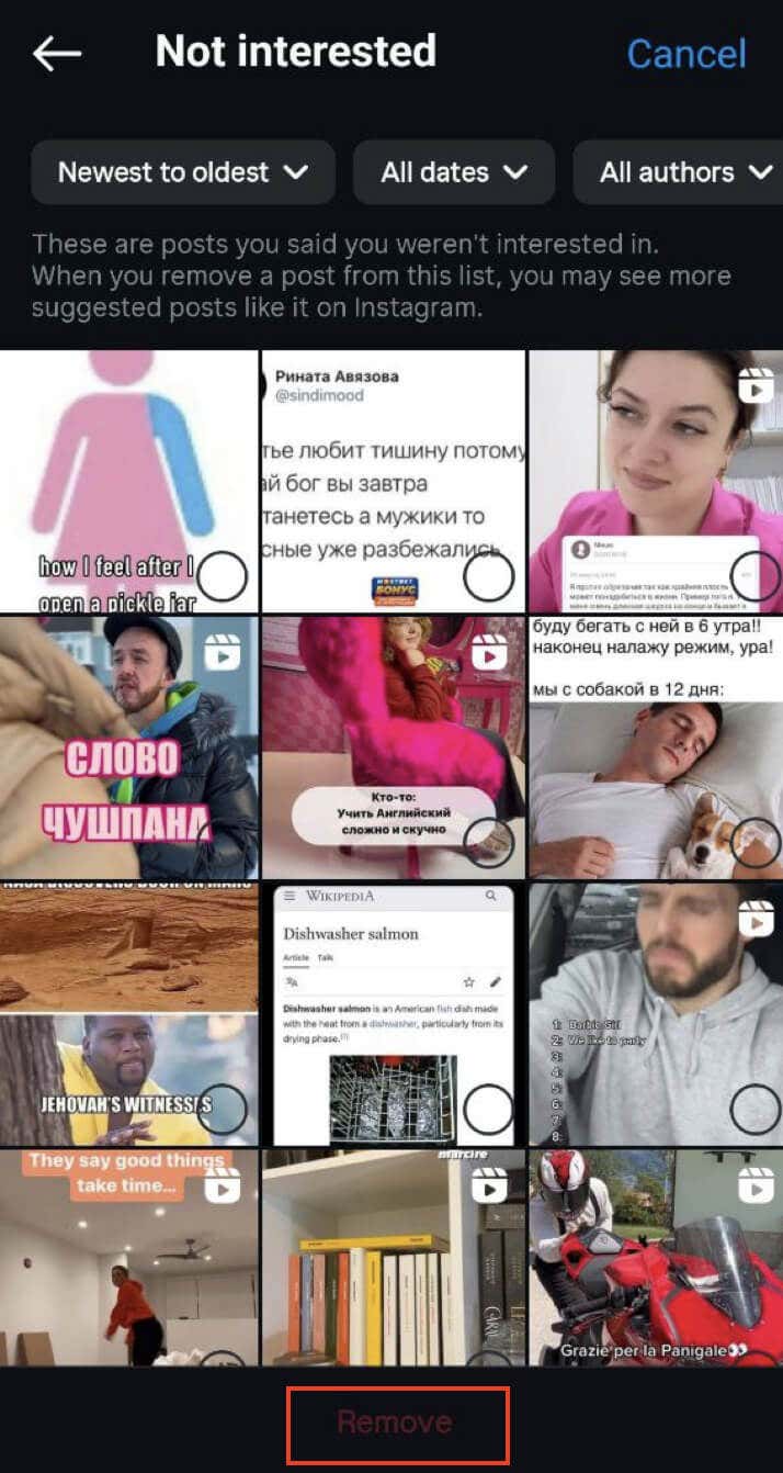 This section contains the posts that you’ve previously marked as Not interested. If you decide to remove a post from this list, Instagram will take a hint and start suggesting more similar content to you.