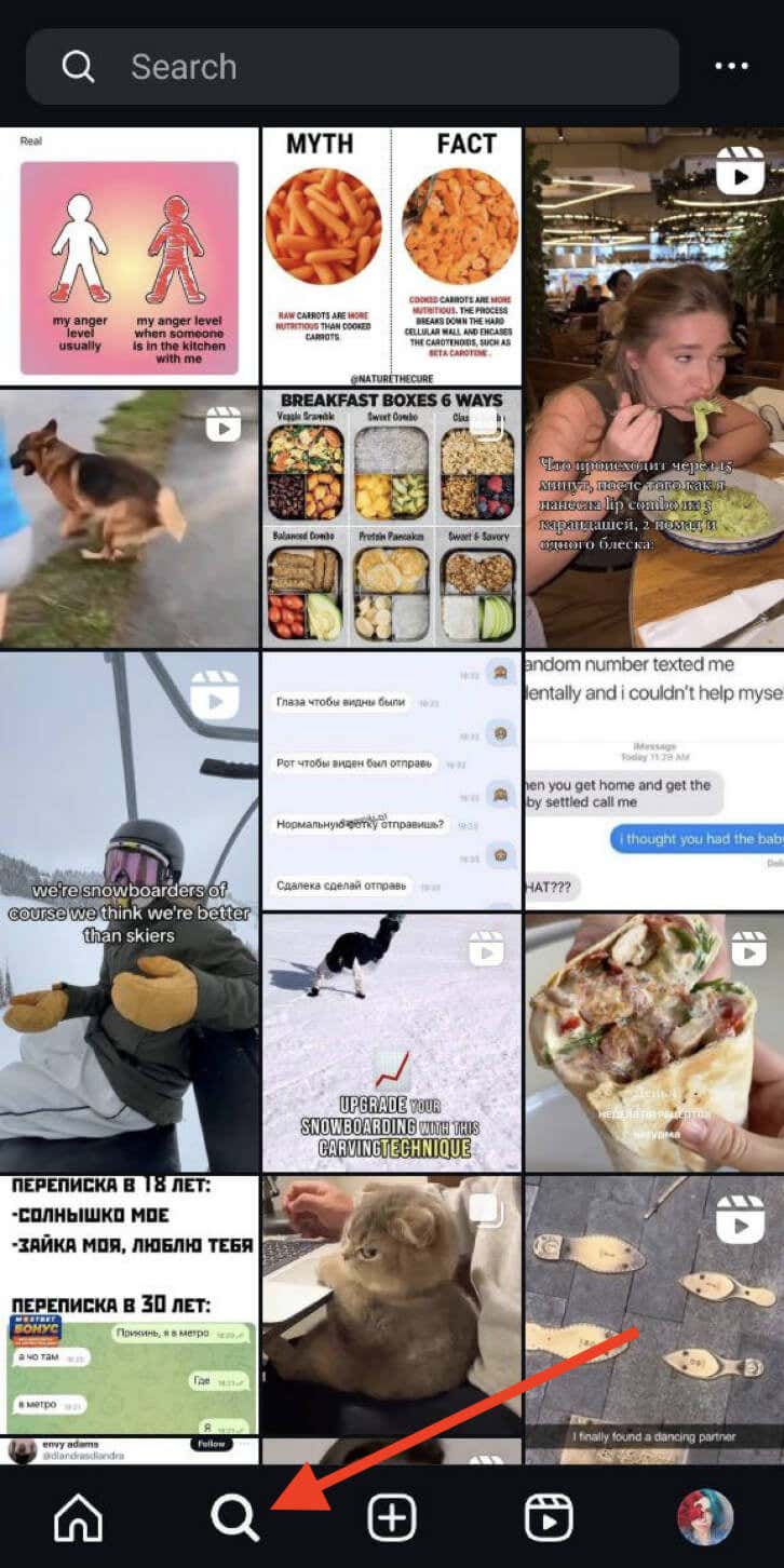 - Launch Instagram on your smartphone and select the magnifying glass icon at the bottom of the page.