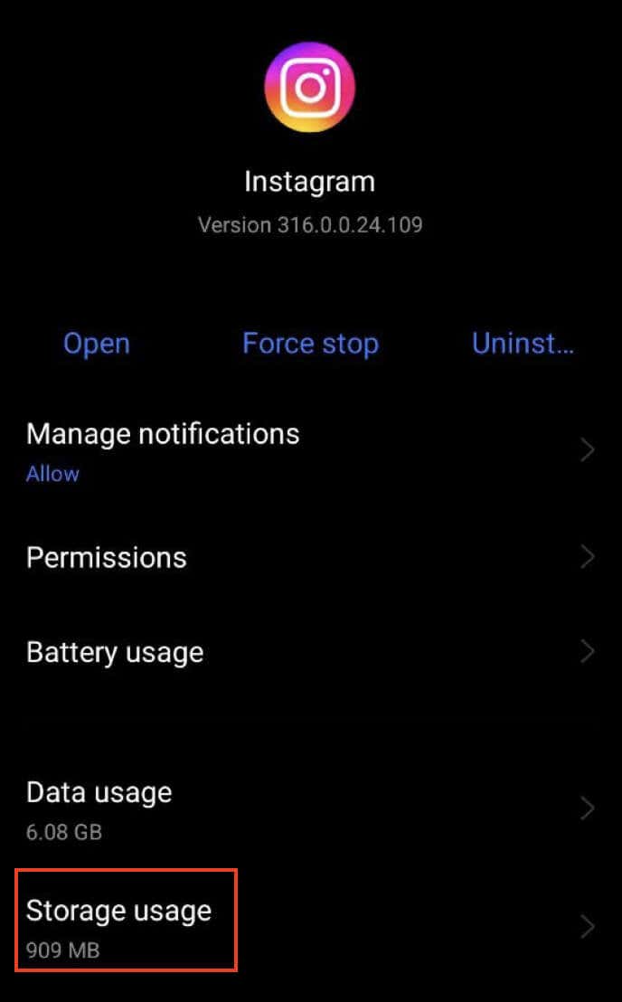 Follow the steps below to clear your Instagram data and cache on an Android.