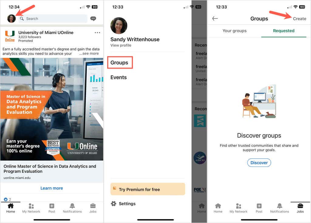 You can create a group on the LinkedIn website or in the mobile app. Head to the spot you want to use, log in, and follow these steps to set up your group.