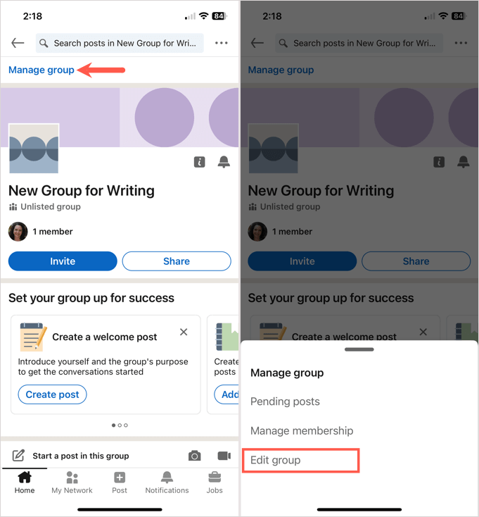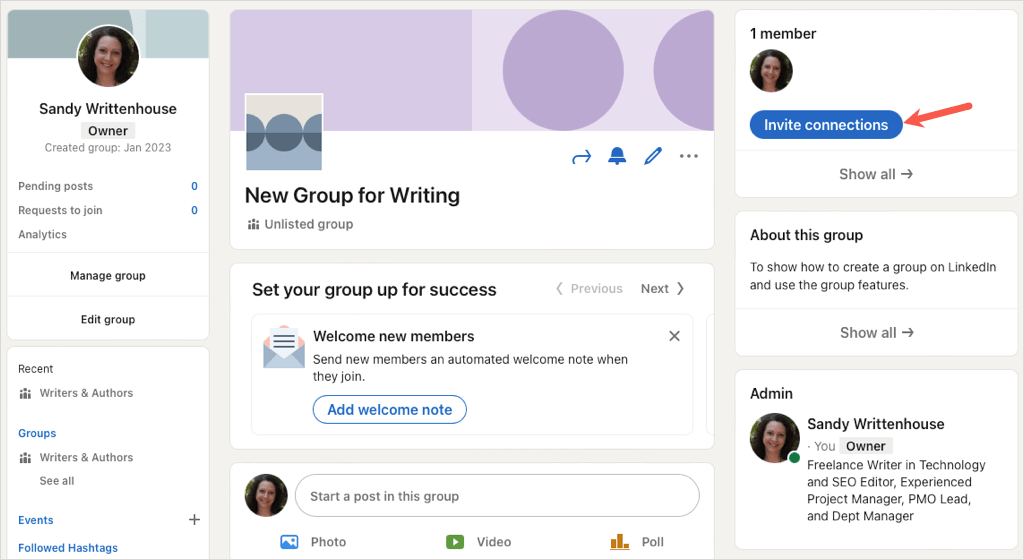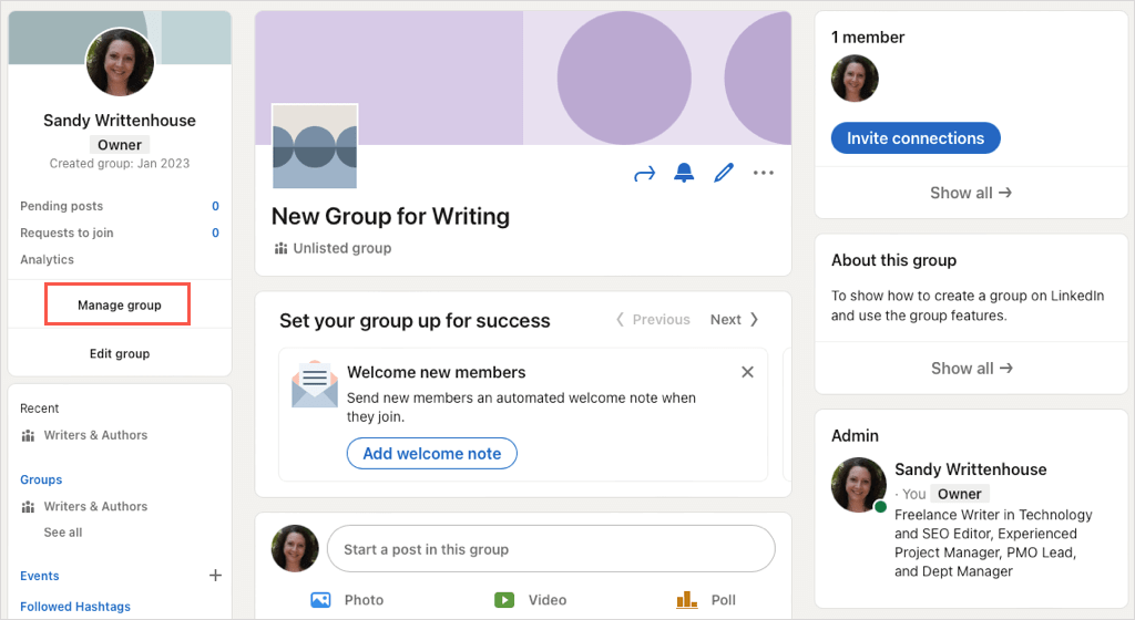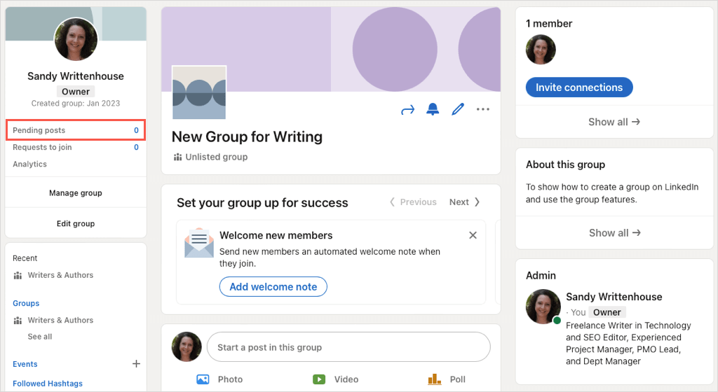 Once you create a LinkedIn group, you can invite members, edit the group, view pending posts, and more. Visit your group’s homepage to get started.