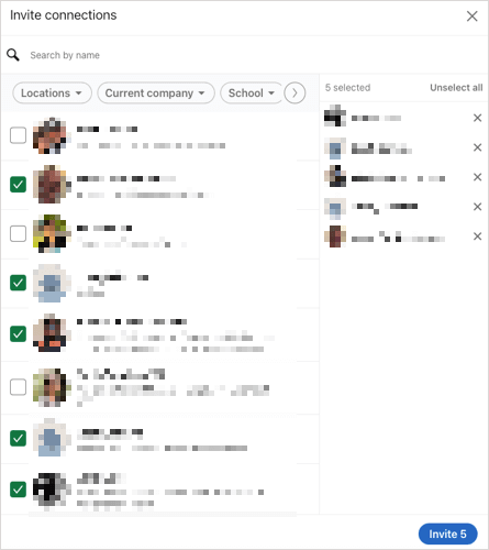 Check the boxes for those connections you want to join your group and pick Invite.